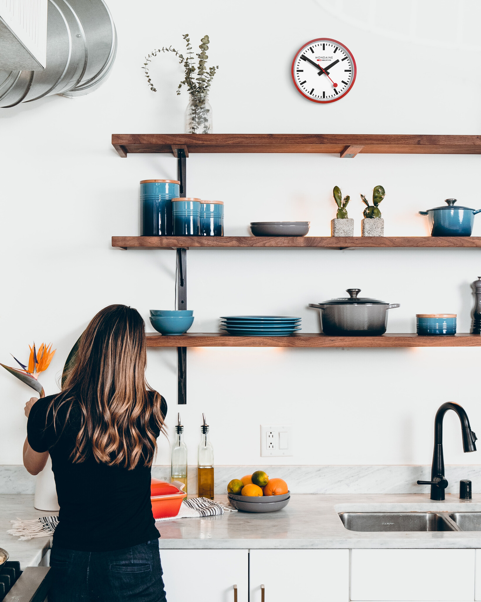 Deze Swiss Railway design Wandklok van Mondaine is rood en heeft een diameter van 25 cm. De secondewijzer met het kenmerkende rode bolletje glijdt gladjes de minuut door. Het uurwerk loopt op 1AA batterij (niet meegeleverd).